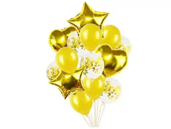 Set De 14 Globos Estrellas Corazones Y Latex Dorado Globos se envian sin INFLAR NO INCLUYE BASE