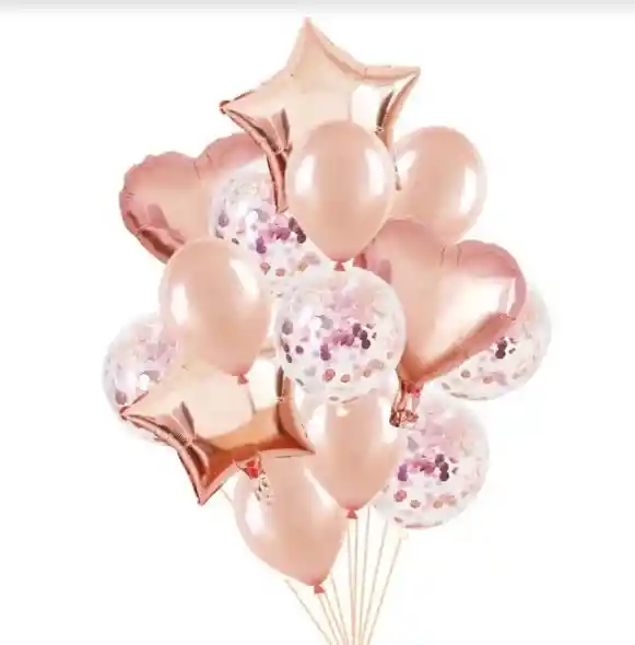 Set De 14 Globos Estrellas Corazones Y Latex Oro Rosa Globos se envian sin INLFAR NO INCLUYE BASE