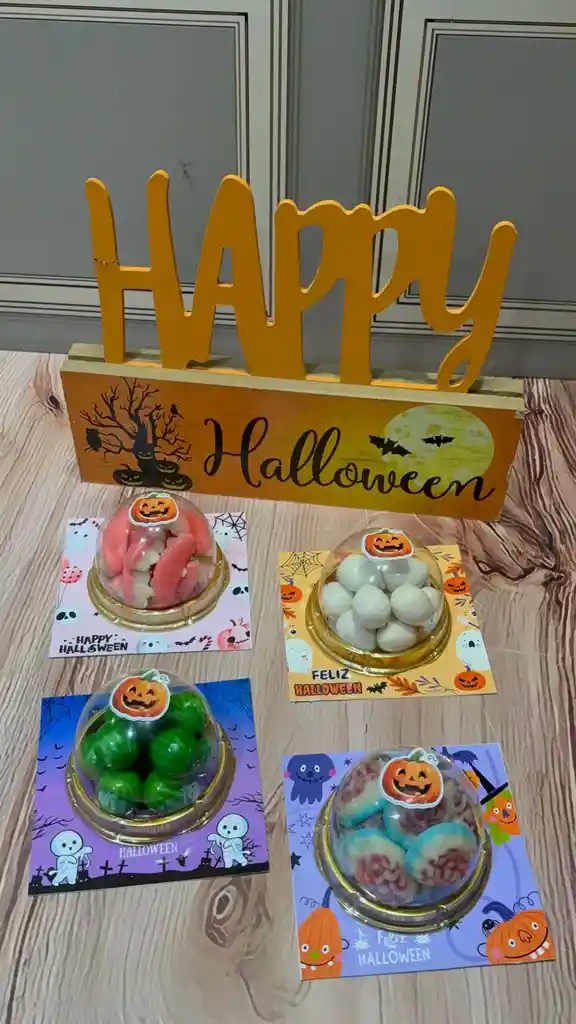 ¡Celebra Halloween con las BURBUJAS HALLOWEEN, una experiencia dulce y divertida! 🎃✨ Cada burbuja está llena de una mezcla irresistible de gomitas, combinando sabores que harán vibrar tu paladar. Además, incluye un mensaje especial y una tarjeta con colores típicos de Halloween para dar un toque único y lleno de magia. Perfectas para regalar o disfrutar en estas fechas especiales. ¡Haz que tu Halloween sea inolvidable con este detalle lleno de sabor y color! 🍬👻