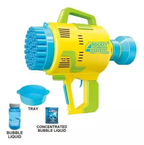 bazooka lanza burbujas automáticas para niños y niñas, juguetes de burbujas mágicas de jabón para baño y exteriores, 48 agujeros, Especial para regalo regalo de cumpleaños, Día del niño, navidad. . Tamaño: 23 cm x 25 cm x 10 cm. . Diseño:48 agujeros. . Alimentación: Pila AA . Liviana y Fácil de usar . Color: Marron, Verde segun disponibilidad