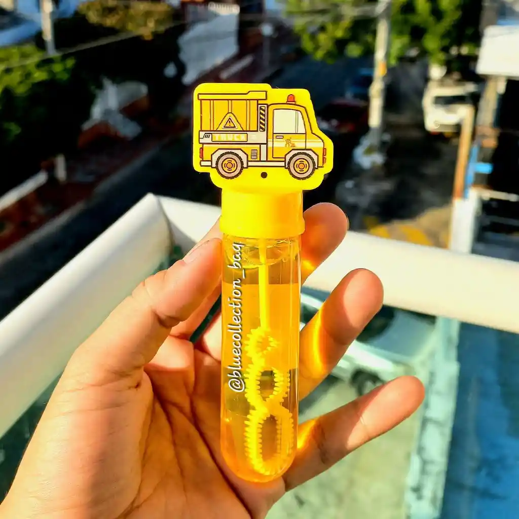 1 Burbujero mediano, CONSTRUCCIÓN para jugar con divertidas burbujas de jabón. Tamaño aproximado de cada burbujero 13 x 3 cm.