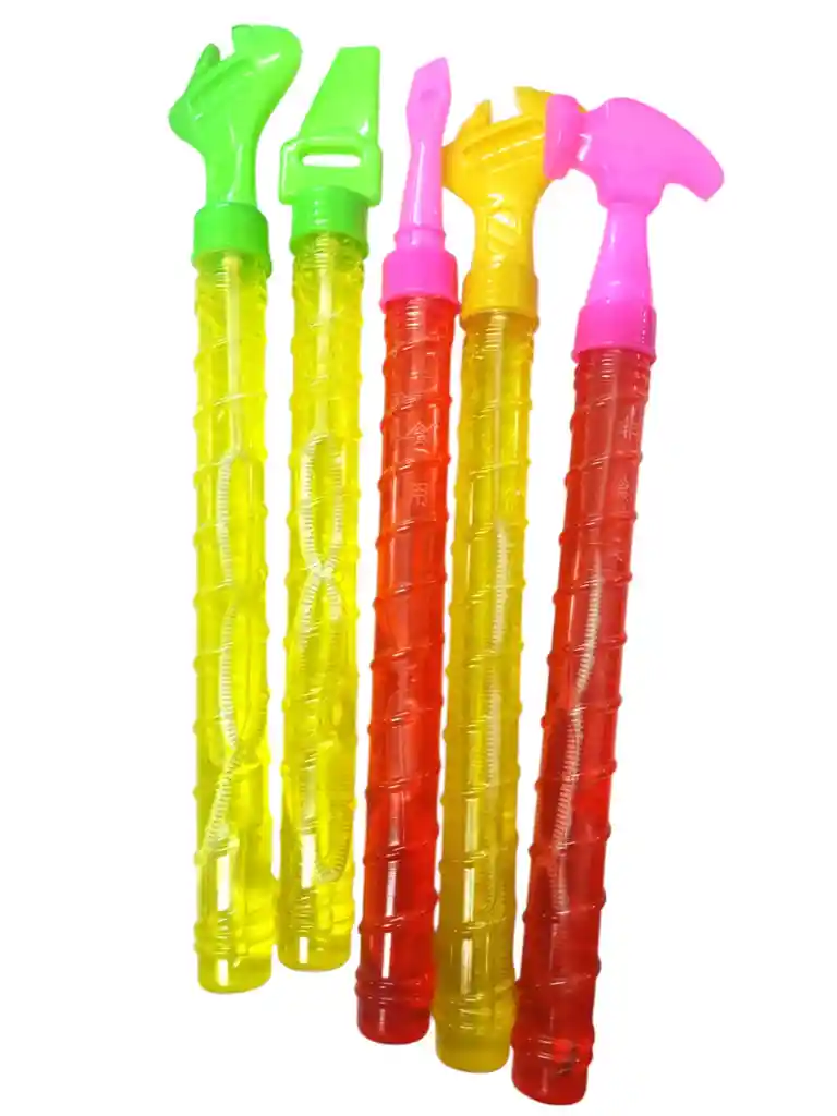caja de 24 unidades de brujeros alto 26 cm contiene líquido para burbujas amarillo azul cerde rosa Caja con 24 unidades