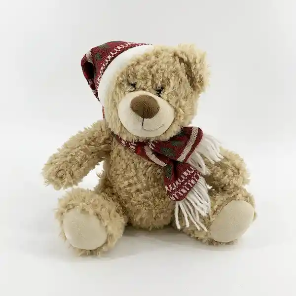 Burica Figura Decorativa Oso Gorro Cuadros Beige 21 cm