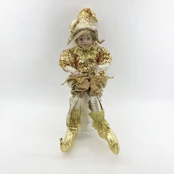Burica Muñeco Niña Sentada Musical Movimiento Dorado 55 cm