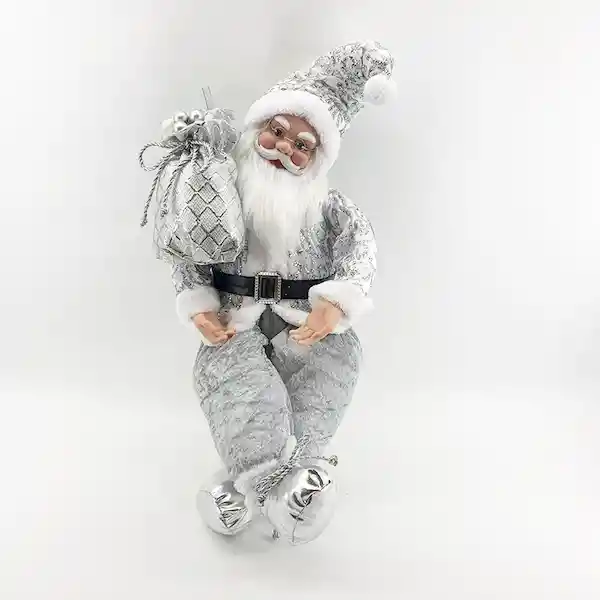 Burica Muñeco Santa Sentado Musical Movimiento Plateado 66 cm