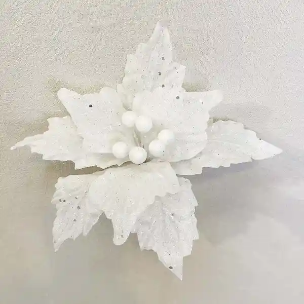 Burica Poinsettia Decorativa Escarchada Blanco 25 x 25 cm