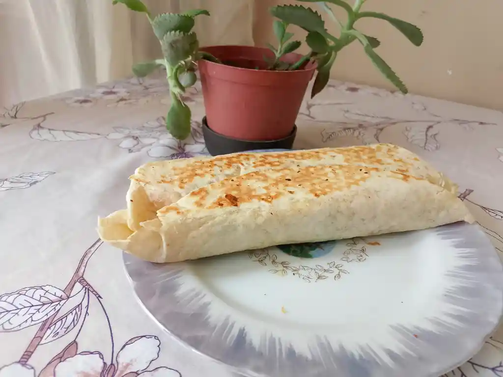 Burrito envuelto en torilla de trigo, 90 gr de cerdo, 90 gr de pollo, peperoni, tocineta, maiz tierno, verduras frescas, queso chedar, salsas ( Guacamole, ahumada, chipotle)