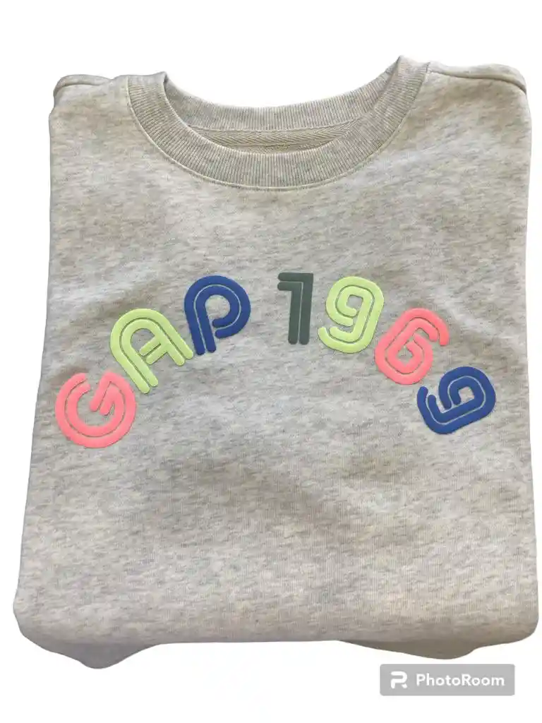 Buso GAP para niña sin capota talla 10. Color gris con texto estampado