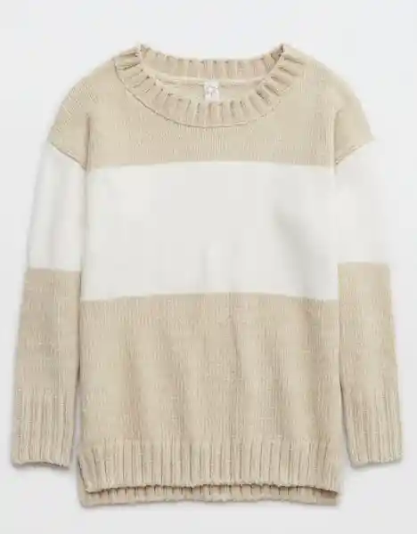 El Tejido: Chenilla Suave Con Detalle de Rayas. Los Detalles: Ajuste Fuera Del Hombro Con Cuello Puños y Dobladillo Acanalados.