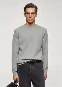 Bajo Recto Cuello Redondo el Modelo Mide 187 cm y Lleva Una Talla M Estructura de Micro Cuadro Los Colores Gris Oscuro y Cobre Son Exclusivo Online Manga Larga Tejido Mezcla de Algodón Terminaciones de Canalé en Cuello Manga y Bajo - 67010651_94.