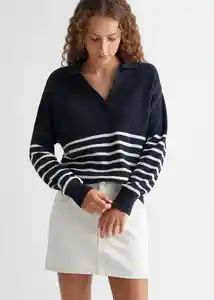 Cuello Pico Diseño Largo Diseño Recto Estampado de Rayas Manga Larga Tejido de Punto Fino - 57013260_56.