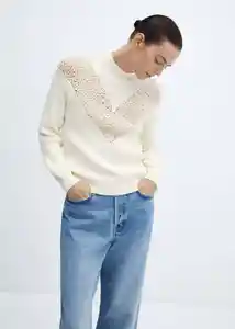 Cuello Perkins Detalles Calados Diseño Recto Manga Larga Abullonada Punto Medio Sin Cierre Tejido Mezcla de Algodón Terminaciones en Canalé - 67000489_05.