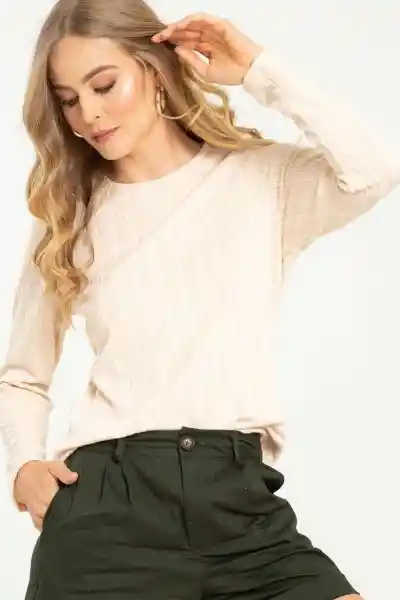 En Jacquard Tejido de Punto Fondo Entero Cuello Redondo Manga Larga.