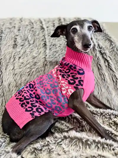Buzo para perros y gatos, manga sisa, cuello y ruedo en resorte, ojal en lomo para trailla, tejido en fibras recicladas.