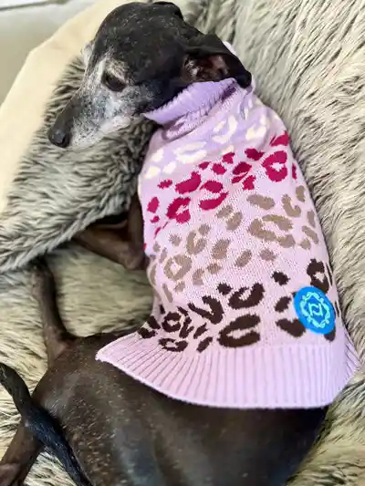 Buzo para perros y gatos, manga sisa, cuello y ruedo en resorte, ojal en lomo para trailla, tejido en fibras recicladas.