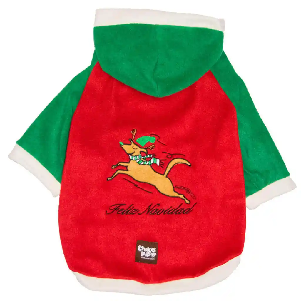 Buzo ideal para proteger a tu mascota contra el frío, es muy cálido y confortable. Uso para noches frías. Viviendas en lugares altos. Te recomendamos este saco para la temporada de frío, mantendrá caliente el cuerpo de tu perro o gato y lo hará lucir muy wapo, elaborado en tela suave y calidad, combinación de colores rojo y verde, bordado Reno Perro volador.