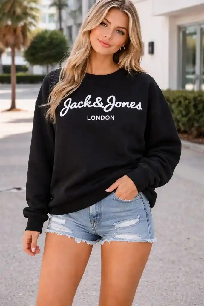 Buzo oversize femenino de manga larga con ajuste holgado y cómodo, ideal para looks casuales y urbanos. Su diseño versátil permite combinarlo fácilmente con shorts, jeans o leggings. Perfecto para uso diario, brinda estilo relajado, comodidad y una silueta moderna que favorece diferentes tipos de cuerpo y edades.