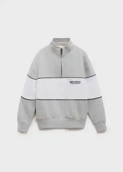 Cuello Perkins Con Cremallera Diseño Bicolor Diseño Recto Manga Larga Tejido de Algodón Texto Estampado en la Parte Frontal - 17023286_94