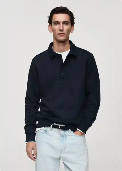 Cuello Polo Con Cierre de Botones el Color Marrón es Exclusivo Online el Modelo Mide 185 cm y Lleva Una Talla M Interior de Algodón Perchado Puños y Bajo Acabado en Rib Regular Fit Tejido Mezcla de Algodón - 87020619_56.