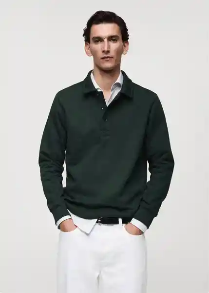 Cuello Polo Con Cierre de Botones el Color Marrón es Exclusivo Online el Modelo Mide 185 cm y Lleva Una Talla M Interior de Algodón Perchado Puños y Bajo Acabado en Rib Regular Fit Tejido Mezcla de Algodón - 87020619_43.