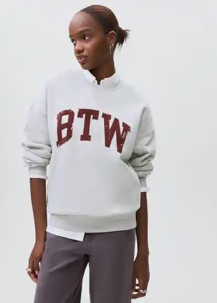 Cuello Redondo Cuello Puños y Bajo en Canalé Diseño Estampado Diseño Recto Manga Larga Mensaje de Terciopelo Tejido de Algodón - 17065793_91.
