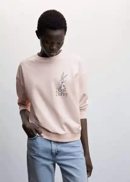 Cuello Redondo Diseño Recto Estampado en la Parte Delantera Licencias Manga Larga Tejido Mezcla de Algodón Terminaciones de Canalé - 47061501_85.
