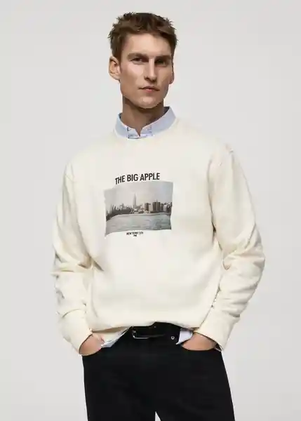 Cuello Redondo el Modelo Mide 185 cm y Lleva Una Talla M Estampado Gráfico en la Parte Delantera Interior de Algodón Perchado Regular Fit Tejido Mezcla de Algodón Terminaciones en Canalé - 87020640_08.