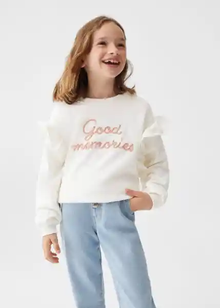 100% Algodón Cuello Redondo Detalle de Volantes Manga Larga Mensaje Estampado Sin Cierre - 57034398_02.