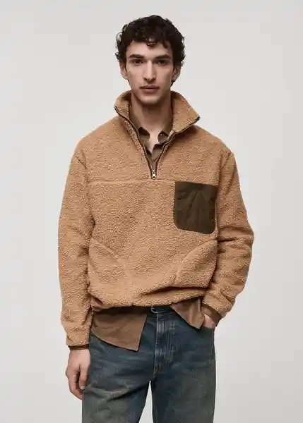 Bolsillo de Parche en el Pecho Con Botón a Presión, Cuello Perkins Con Cierre de Cremallera, Detalle Costura en la Parte Delantera, Dos Bolsillos Laterales, el Modelo Mide 185 cm y Lleva Una Talla M, Materiales Reciclados, Tejido Efecto Borreguito - 77027927_09.