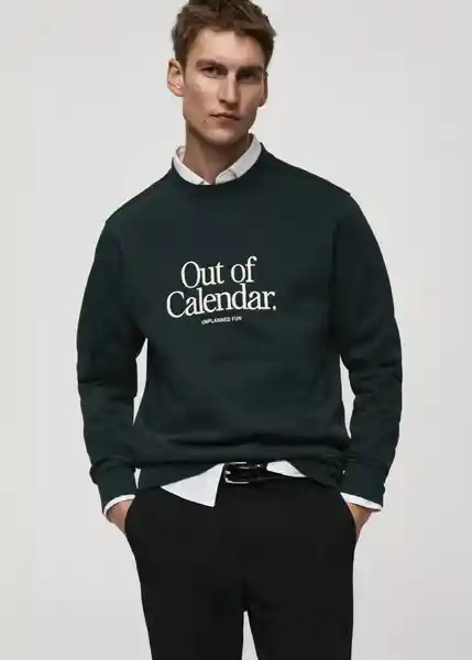 Acabados en Rib Cuello Redondo el Modelo Mide 185 cm y Lleva Una Talla M Regular Fit Tejido Mezcla de Algodón Texto Estampado en la Parte Frontal - 87032893_43.