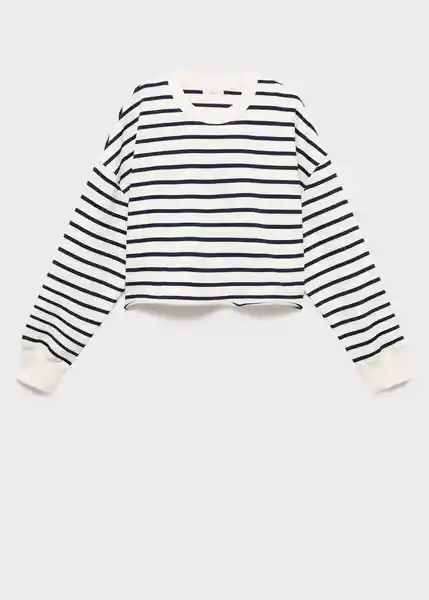 Cuello Redondo Cuello y Puños en Canalé Cuello y Puños en Contraste Diseño Recto Manga Larga Tejido 100% Algodón Tejido de Rayas - 17075792_02.