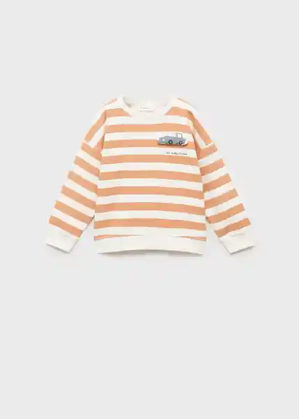 100% Algodón Cuello Redondo Cuello Puños y Bajo en Canalé Diseño Recto Estampado Rayas Manga Larga Mensaje Estampado Con Relieve en el Pecho - 87093634_17.