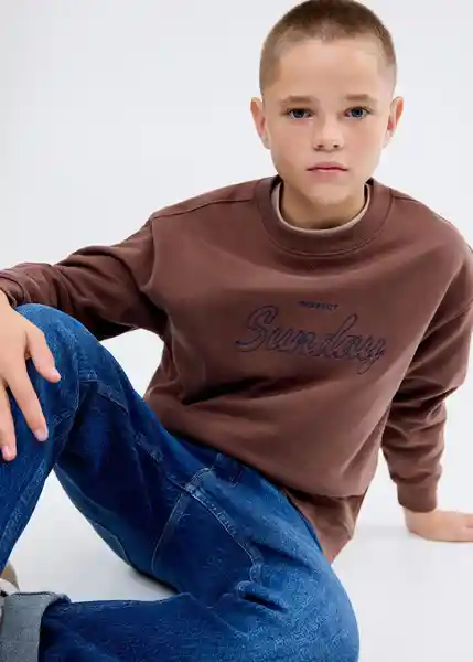 Bordado en la Parte Delantera Cuello Redondo Cuello Puños y Bajo en Canalé Diseño Bordado Diseño Recto Manga Larga Tejido 100% Algodón - 17046344_30.