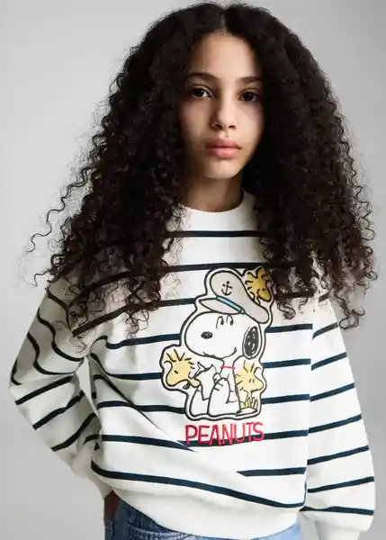 100% Algodón Cuello Redondo Cuello Puños y Bajo en Canalé Diseño de Snoopy Diseño Recto Estampado de Rayas Licencia Kids Manga Larga - 87096344_56.