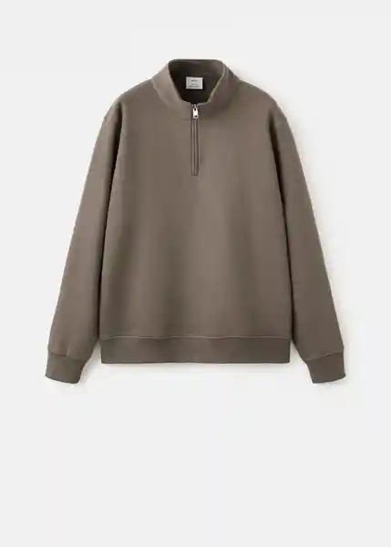 Bajo Recto Cuello Perkins Con Cierre de Cremallera el Color Marrón es Exclusivo Online Puños y Bajo Acabado en Rib Regular Fit Tejido Mezcla de Algodón - 27021265_35.