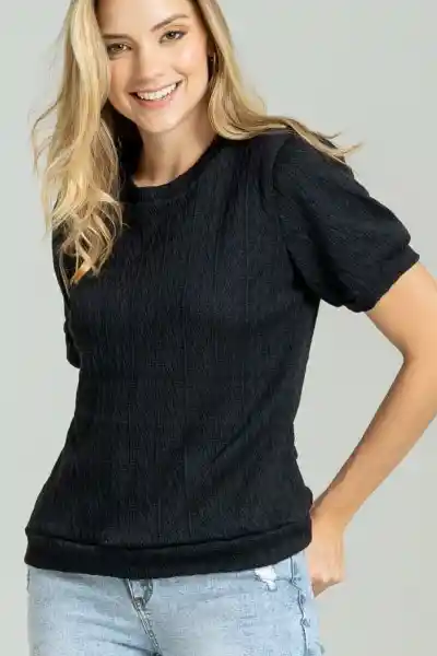 En Jacquard Fondo Entero Cuello Redondo Manga Corta Con Puño.