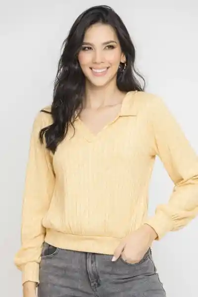 Tejido Acanalado Con Cuello y Escote en V Manga Larga Amplia Con Puño Silueta Amplia.