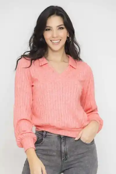 Tejido Acanalado Con Cuello y Escote en V Manga Larga Amplia Con Puño Silueta Amplia.