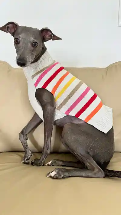 Buzo para perros y gatos, manga sisa, cuello y ruedo en resorte, ojal en lomo para trailla, tejido en fibras recicladas.