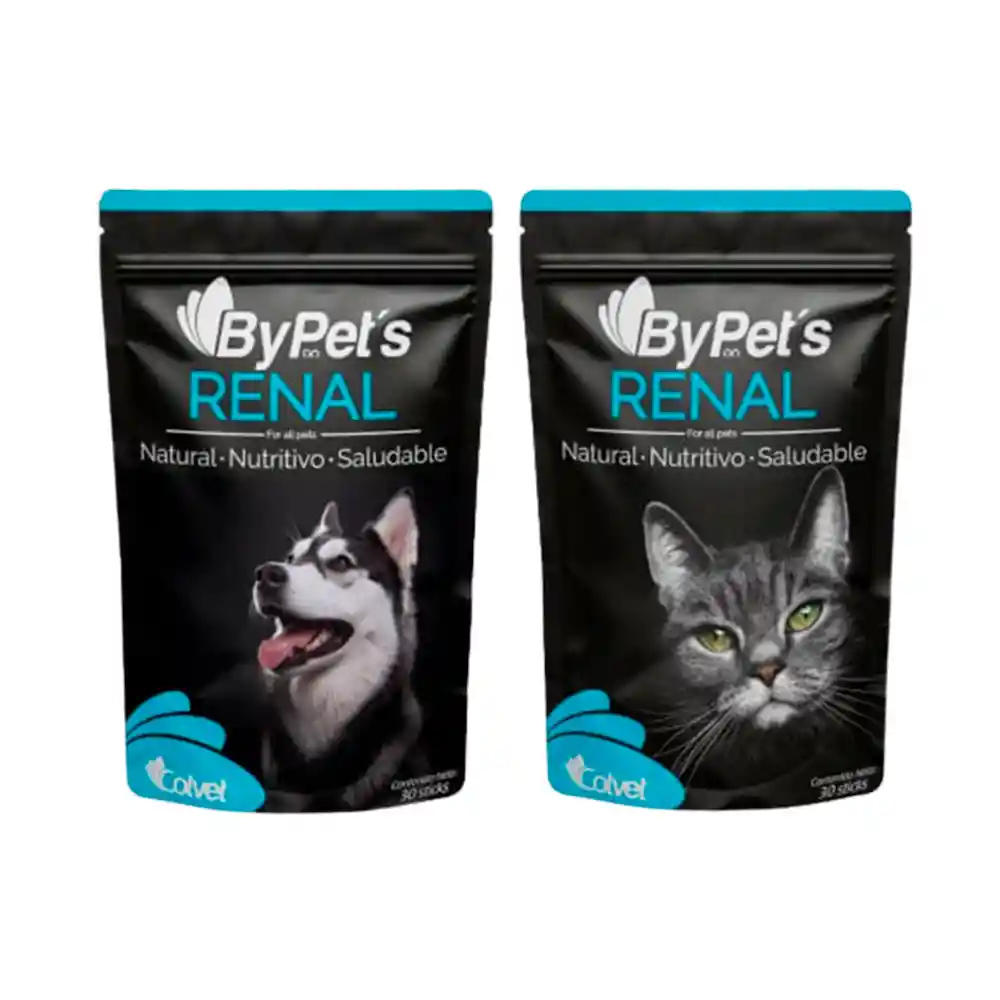 BYPET'S RENAL X 30 Gr NDICACIONES: BYPET'S RENAL es un suplemento alimenticio a base de probióticos, aminoácidos, minerales, vitaminas, ácidos grasos ESPECIES: Perros y Gatos ADMINISTRACIÓN:Suministrar por vía oral con el alimento o inmediatamente después de éste.