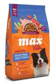 Max vita adulto carne y frango es un alimento seco premium para perros adultos, formulado para brindar nutrición equilibrada con un 23-26% de proteína. Su receta incluye ingredientes de carne y pollo, prebióticos y extracto de yuca para heces firmes y con menos olor, además de omega 6 para piel y pelo saludables.