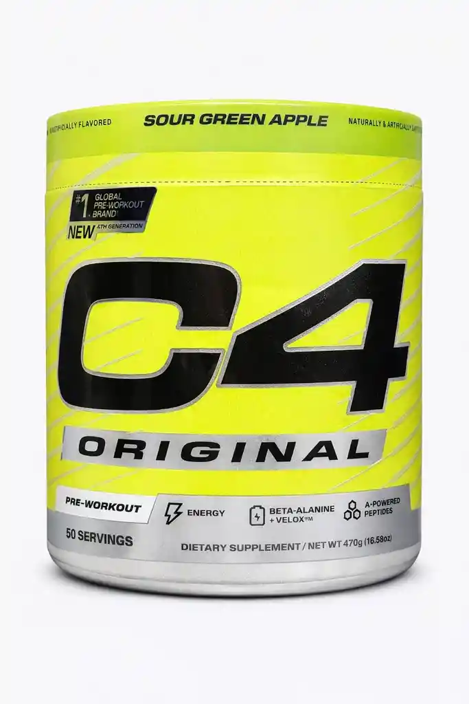 C4 Pre Workout 50 Servicios Cellucor – Polvo Pre-Entrenamiento para Energía, Resistencia y Enfoque Lleva tu rendimiento al gimnasio a otro nivel con Cellucor C4 Original, uno de los pre-entrenos más reconocidos y consumidos del mundo. Formulado para ofrecer energía explosiva, mayor resistencia y concentración durante tus sesiones de entrenamiento, este suplemento es ideal para quienes entrenan con intensidad y buscan maximizar sus resultados. ¿Qué hace? Genera una energía sostenida para entrenamientos exigentes gracias a su blend activo de ingredientes clave. Ayuda a combatir la fatiga muscular y mejorar la resistencia durante series prolongadas. Apoya un enfoque más nítido desde la primera hasta la última repetición. Características principales: Pre-entrenamiento en polvo para uso diario antes del entrenamiento. Fórmula diseñada para proporcionar energía, resistencia y enfoque. Presentación de 50 porciones por envase (óptimo para un mes de uso). Fácil de mezclar con agua. ¿Para quién es ideal? Este pre-entreno es perfecto para adultos activos, deportistas y entusiastas del fitness que buscan un impulso extra antes de entrenar, mejorar su rendimiento físico y mantenerse enfocados durante sus entrenamientos. Modo de uso: Mezcla 1 scoop con agua y consume 20-30 minutos antes de tu rutina. Se recomienda evaluar tolerancia si es tu primer suplemento pre-entreno.
