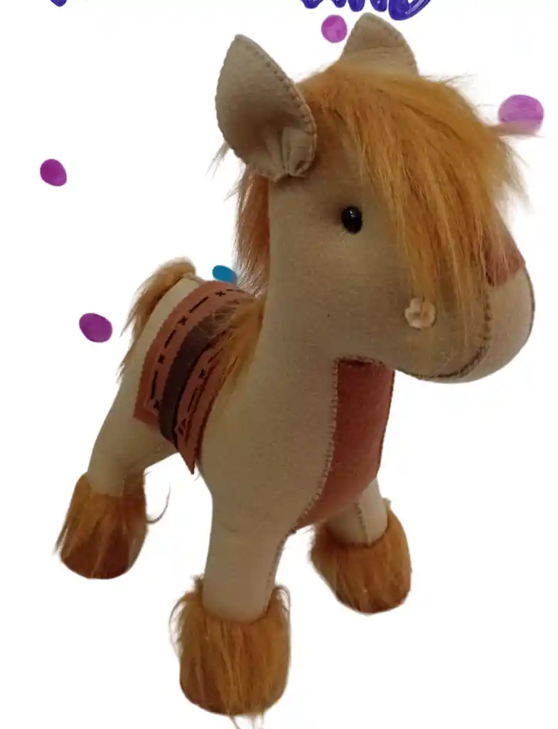 Tierno y elegante caballito elaborado a mano en tela suave, con melena y patas decoradas en fibras que le dan un acabado realista y encantador. Su diseño incluye una silla de montar bordada que lo convierte en el compañero ideal para juegos de princesas, fantasía y aventuras mágicas. Perfecto para coleccionistas, decoración infantil o como un regalo especial que despierta la imaginación y la ternura en grandes y pequeños.