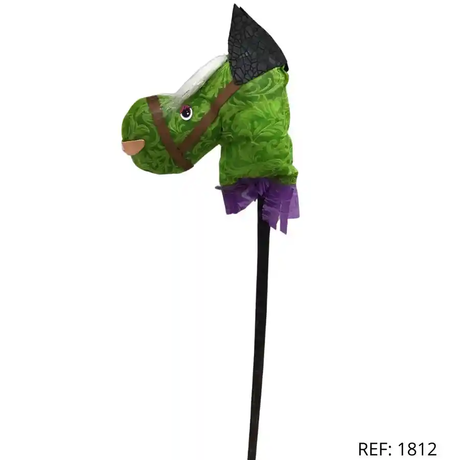 Caballito de palo verde con detalles llamativos. Ideal para aventuras infantiles y juegos de rol.