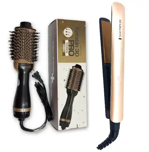Combo Remington Plancha Keratina + Cepillo Secador: La Solución Completa para un Cabello Impecable Descubre el Combo Remington Plancha Keratina + Cepillo Secador, un conjunto ideal para conseguir un peinado de salón desde la comodidad de tu hogar. Este dúo de herramientas está diseñado para ofrecerte resultados profesionales, alisando, protegiendo y peinando tu cabello con facilidad. Plancha de Keratina: Infusión de Keratina y Aceite de Argán: Tratamiento integrado que mejora la suavidad y el brillo de tu cabello, dejándolo con un acabado saludable y radiante. Placas de Cerámica con Turmalina: Distribución uniforme del calor que minimiza el daño y asegura un deslizamiento suave por el cabello. Rápido Calentamiento: Listo para usar en solo 30 segundos, ideal para quienes tienen una rutina de peinado rápida. Rango de Temperatura Ajustable: Configura la temperatura entre 140°C y 230°C para adaptarla a las necesidades específicas de tu cabello. Apagado Automático: Apagado de seguridad tras 60 minutos de inactividad, ofreciendo tranquilidad durante el uso. Cable Giratorio de 3 Metros: Flexibilidad y comodidad para peinarte sin restricciones. Cepillo Secador: Tecnología Iónica Antifrizz: Neutraliza la electricidad estática, reduciendo el frizz y dejando tu cabello suave y manejable. Cerdas Mixtas: Combinan cerdas suaves y firmes para desenredar y peinar el cabello sin esfuerzo, asegurando un acabado uniforme. 3 Niveles de Calor y Velocidad: Ajusta el calor y la velocidad según tu tipo de cabello y el estilo que desees conseguir. Función de Aire Frío: Fija tu peinado y añade brillo con un toque final de aire frío. Cable Giratorio de 2 Metros: Facilita el manejo durante el secado, evitando enredos y mejorando la comodidad. El Combo Remington Plancha Keratina + Cepillo Secador es perfecto para quienes buscan un cabello perfectamente peinado y protegido. Con este combo, puedes lograr un look liso, suave y libre de frizz, manteniendo la salud de tu cabello con tecnología avanzada y materiales de alta calidad. ¡Transforma tu rutina de peinado y disfruta de resultados profesionales cada día!