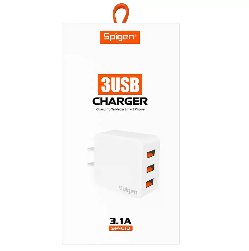 El Cargador USB Triple SP-C13 de Spigen® es una solución de carga eficiente y compacta diseñada para alimentar múltiples dispositivos simultáneamente con total seguridad. Con capacidad de hasta 3.1A de salida total, este cargador es ideal para usuarios que necesitan conectar smartphones, tablets y otros dispositivos USB sin sacrificar velocidad o rendimiento. Características Principales: ✅ Triple Puerto USB: Carga hasta 3 dispositivos al mismo tiempo con un diseño compacto y portátil. ⚡ Salida Total de 3.1A: Distribución inteligente de energía para una carga rápida y equilibrada (compatible con la mayoría de dispositivos). 🔌 Compatibilidad Universal: Funciona con smartphones, tablets, auriculares inalámbricos y otros accesorios USB. 🛡️ Protección Avanzada: Incluye sistemas de protección contra sobrecarga, cortocircuitos y fluctuaciones de voltaje. 🏗️ Diseño Duradero: Construcción robusta con materiales de alta calidad para mayor resistencia y vida útil. Especificaciones Técnicas: Modelo: SP-C13 Marca: Spigen® Tipo de Conector: 3 puertos USB-A (estándar). Salida Total: 3.1A (distribuida según demanda). Compatibilidad: iPhone, Android, tablets, accesorios USB, etc. Certificaciones: Cumple con normativas internacionales de seguridad. Marca: Spigen® — Sinónimo de accesorios tecnológicos de alta calidad, diseñados para simplificar tu vida digital. Perfecto para viajes, oficinas o uso en el hogar, este cargador ofrece versatilidad, seguridad y velocidad en un formato compacto. 📌 Nota: No incluye cables USB (se venden por separado).