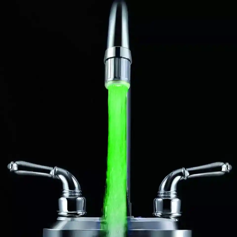 Grifo Sensor de temperatura con dínamo Luz Led cocina Lavamanos. La luz del grifo cambiará de color según la temperatura del agua. El cambio de color te recuerda la temperatura del agua. Cuando el agua fluye hacia abajo, el LED se iluminará al instante y automáticamente el agua brilla azul cuando el agua es fría (temperatura inferior a 30 grados centígrados).