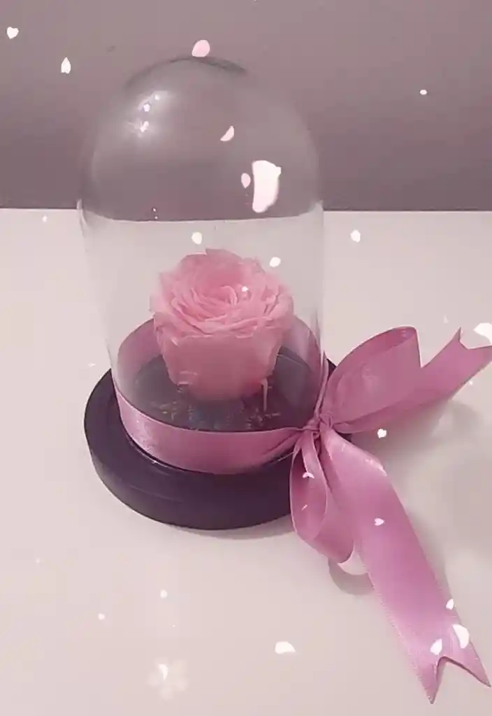 ROSA PRESERVADA, DOMO EN CRISTAL, CINTA DECORATIVA Y TARJETA PERSONALIZADA