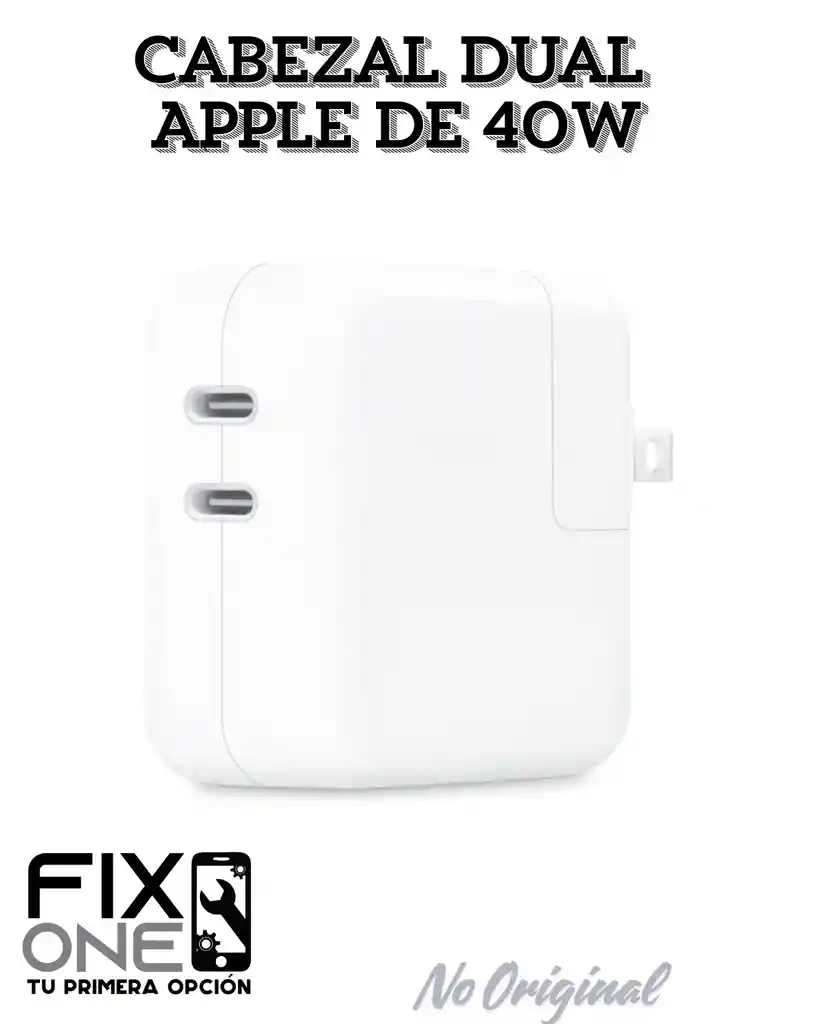 Adaptador de corriente de iphone de 40W El producto NO ES ORIGINAL Doble Entrada tipo C NO INCLUYE EL CABLE Cargador para tu iphone, carga rápida. Contamos con tienda física donde te ofrecemos un servicio Tècnico especializado si deseas hacer una reparación El producto presta la misma funcionalidad y compatibilidad que el original ✅Nuestros productos antes de ser enviados son probados ✅Imagen de referencia