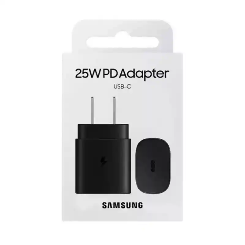Cargador Samsung de 25W Tipo C con carga rápida. Compatible con dispositivos Samsung. Seguro, eficiente y compacto.
